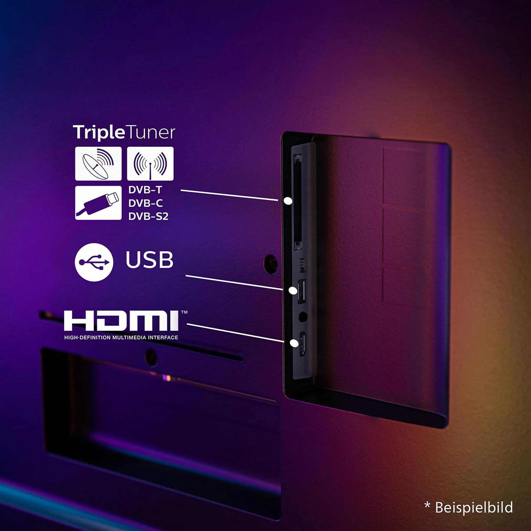 Le système prend en charge les modes de réception HD DVB-C, DVB-S, DVB-S2 et DVB-T2. Le récepteur satellite intégré permet de recevoir un large choix de chaînes.